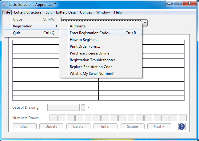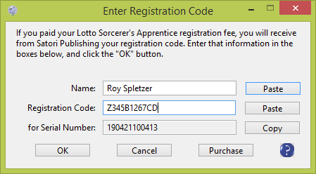 When you use Lotto Sorcerer's Apprentice's menu item "File > Registration > Enter Registration Code"...